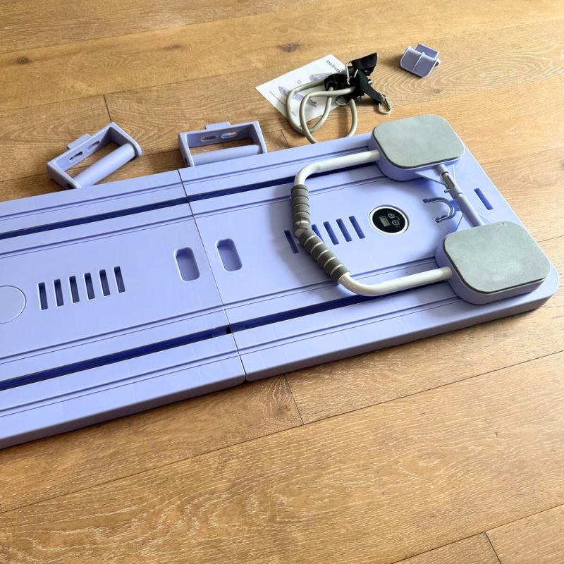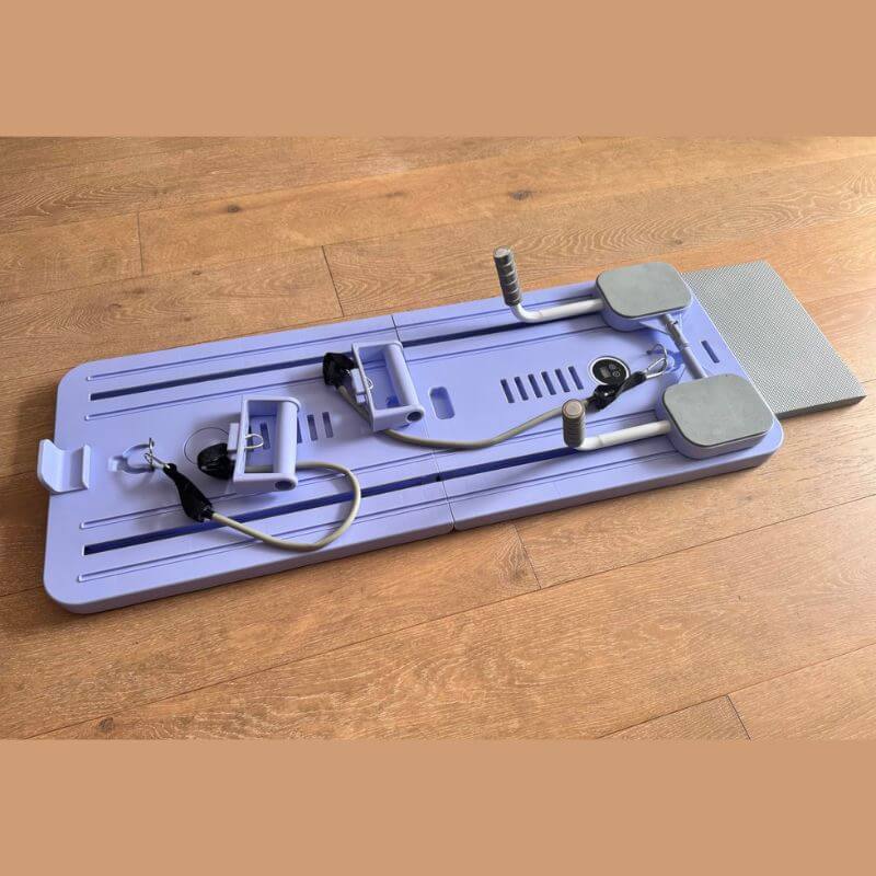 Our portable Pilates board is designed to give you a reformer-style workout without the bulk or high cost. It targets the same core strength, balance, and flexibility training, but is compact, lightweight, and easy to use at home or on the go.